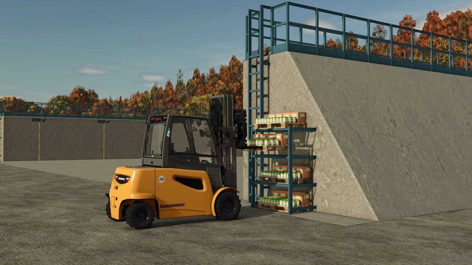 – Police na palety s přísadami do siláže.