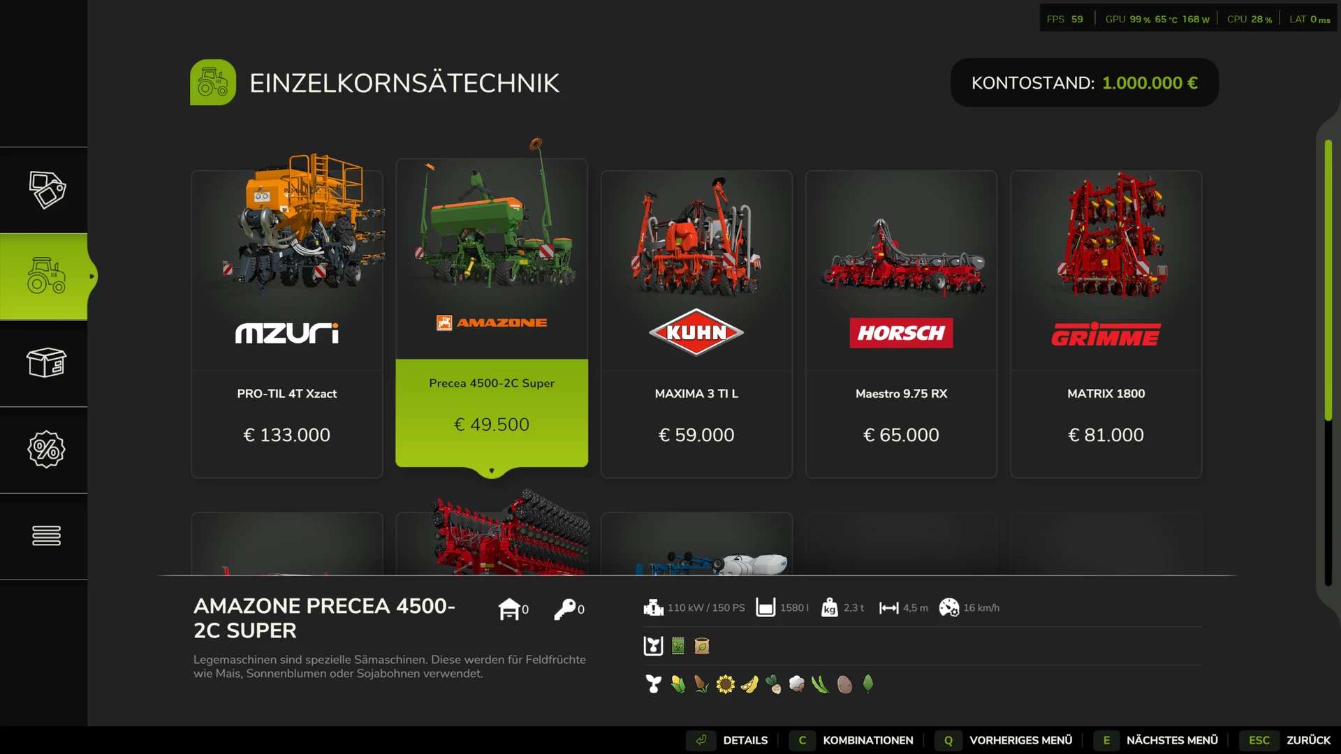 Brambory lze nyní sázet všemi přesnými secími stroji a secími stroji ve hře, které jako typ plodiny používají „Kategorie“.