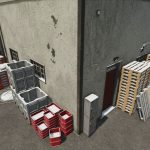 Balení obsahuje různé druhy stohovaných palet a beden, lana a kartony.