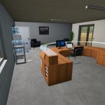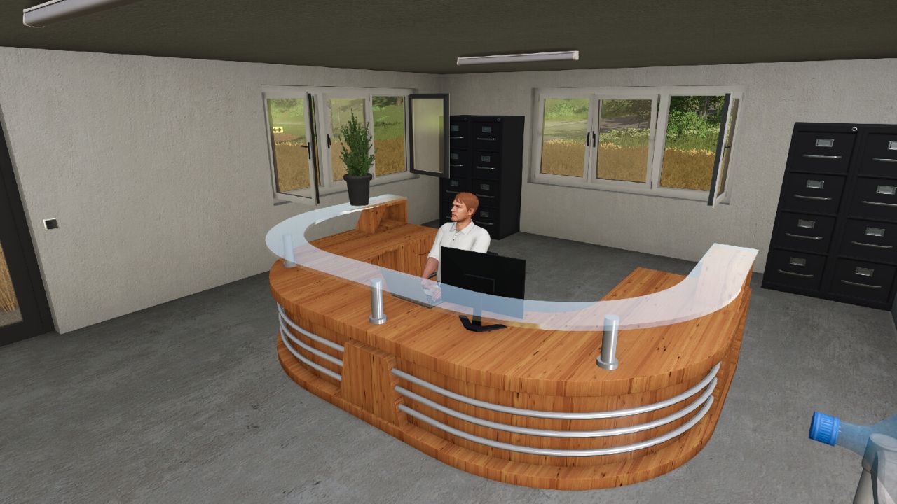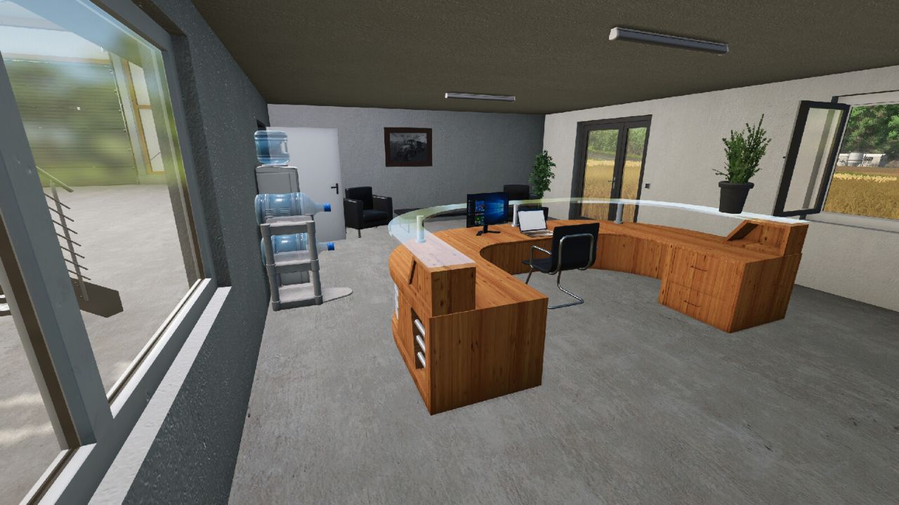 Zde jsou původní haly Hörmann, přestavěné pro RP. Všechna okna, dveře a vypínače jsou nyní animované. Také jsem zpřístupnil vnitřní místnosti. Navíc jsem do jedné z hal přidal spouštěč dílny. V horních místnostech je nyní šatna s menu šatníků. Navíc je nyní možné používat téměř všechny židle v kancelářích.
