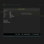 Obrazovka trhu (F10) – kompletní stránka InGameMenu se třemi záložkami: aktuální ceny s procentuální změnou a grafem trendů relace, aktivní světové události s intenzitou a zbývajícím časem a historie vašich smluv. Stisknutím klávesy N nebo kliknutím na Nová smlouva otevřete dialogové okno smlouvy z libovolného místa na obrazovce.