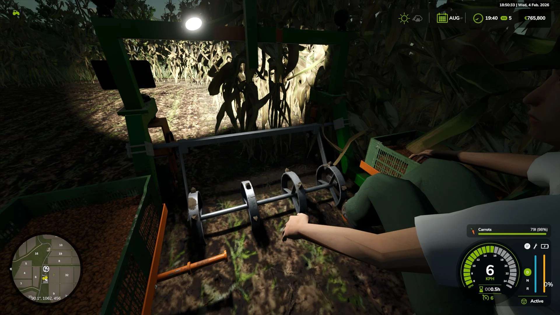Nezapomeňte před sklizní spustit stroj (V), jinak nic nezbere, je to herní mechanika, kterou nelze přeskočit.