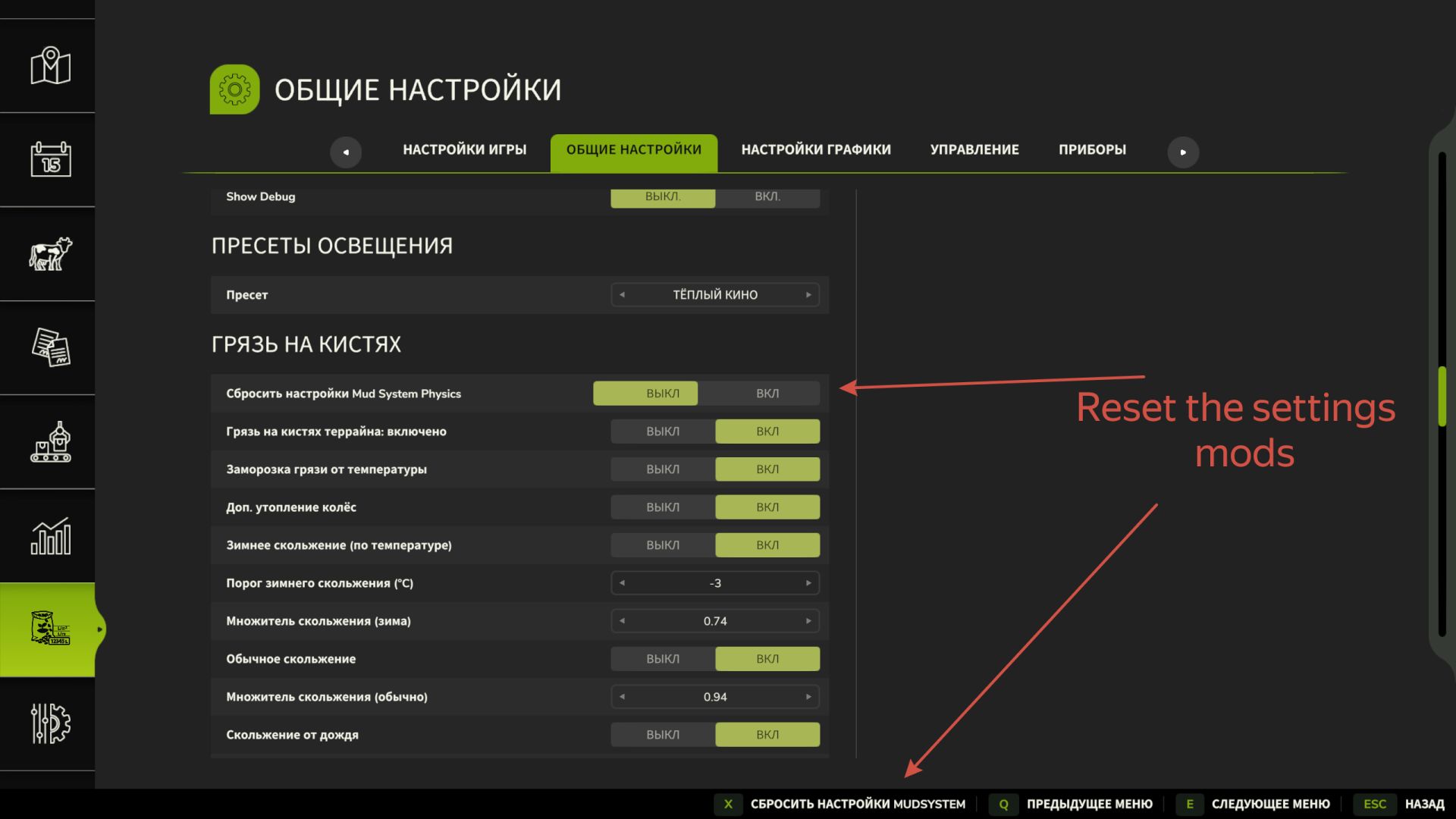 – Široká kola se nyní méně zasekávají v bahně. (toto lze zapnout nebo vypnout a také nakonfigurovat v nastavení modu)