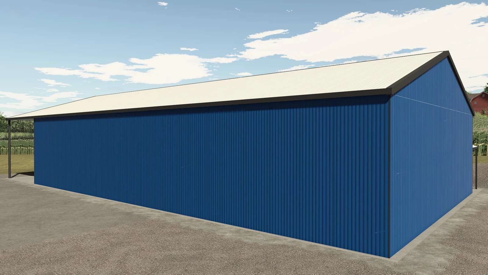 Garáž, kde můžete skladovat vozidla a plodiny. Uvnitř můžete využít police na palety nebo velké pytle.