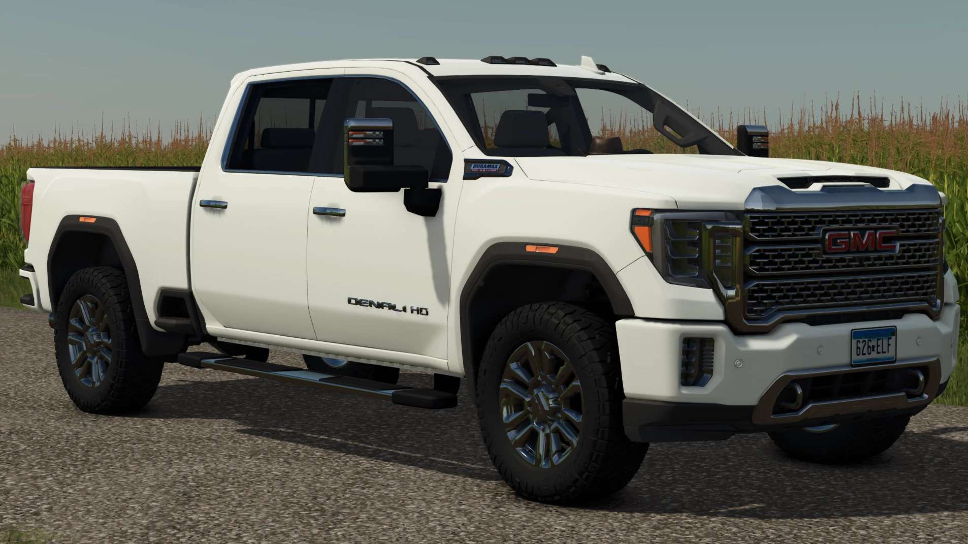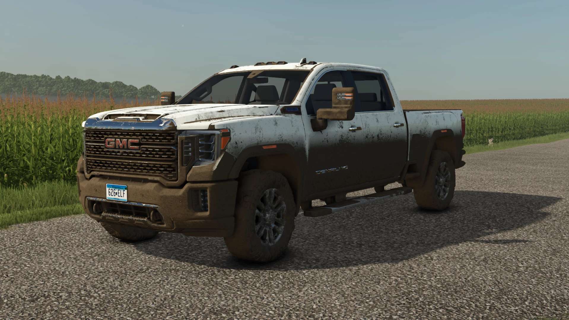 Zde je můj GMC Sierra Denali 2500 z roku 2020. Toto je můj první pokus o úpravu vozidla, takže možná není 100% dokonalá, ale jsem si dostatečně jistý, abych se o ni s vámi všemi podělil. Rád bych poděkoval Deluyck Farms za veškerou pomoc s touto úpravou a Bar S Farms za referenční fotografie jeho pick-upu.