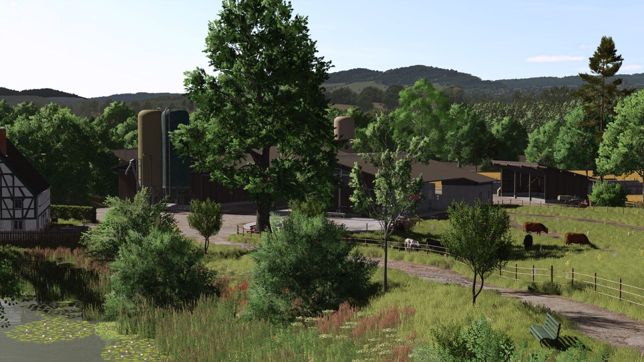 Helden – odlehlá malá vesnička v srdci středního Německa. Obklopena zvlněnými kopci, poli a loukami, na vás čeká klidná venkovská atmosféra, silně inspirovaná regionem Hesensko. Mapa kombinuje autentickou krajinu, milující detaily a rozmanité možnosti pro vaše vlastní zemědělské podnikání.