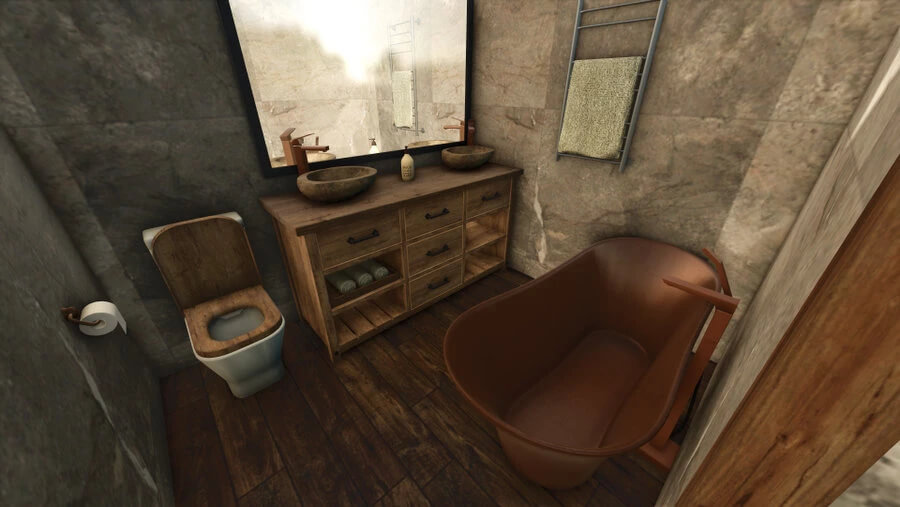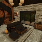 Vila je plně funkční v horském stylu; myslím, že by se její styl hodil na jakoukoli mapu. Nábytek, vstupní dveře, vypínače, elektrické zásuvky a vnitřní osvětlení jsem navrhl a vytvořil já. (Pokud je chcete použít v modech, požádejte mě o svolení – neberte si je jako své, buďte zdvořilí a inteligentní – zeptejte se.)