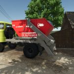 Můžete změnit více barev. Zahrnuje nástavbu pro přepravu kontejneru, kontejner, sklápěč a sklápěč sila. V kontejneru lze také přepravovat hrozny. Kola navlhnou a zablátí se. Vyskytl se problém s kolizí podpěry, opravil jsem to tak, aby zmizela a stoupala níže.