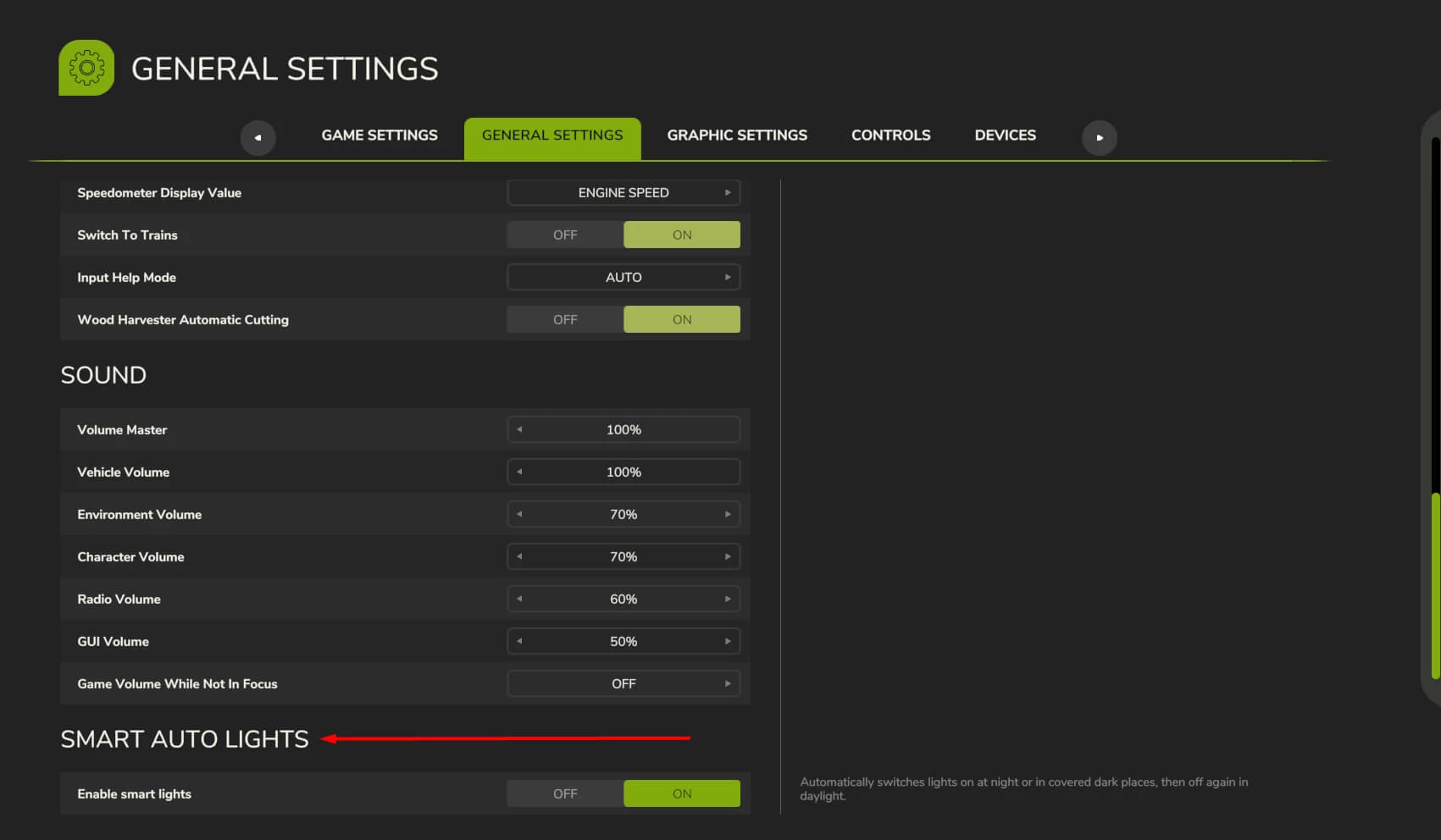 – Všechny aspekty modu jsou plně přizpůsobitelné. Chcete-li je nakonfigurovat, přejděte do Menu – Obecná nastavení – kategorie Inteligentní automatické světlo.