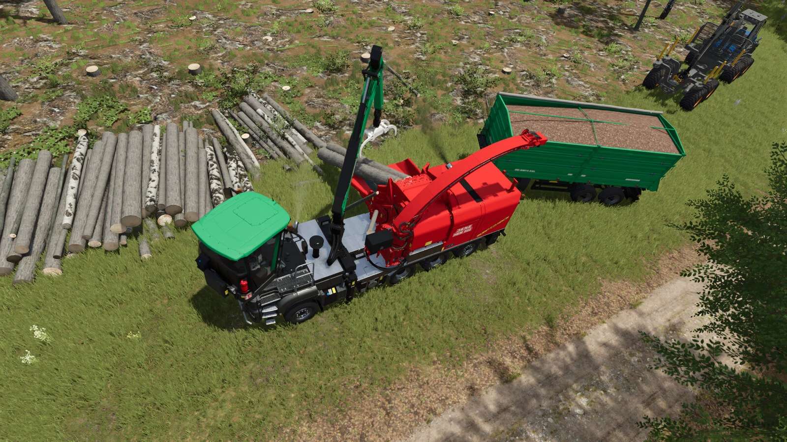 – Výběr barev: Vnitřní ráfky, Vnější ráfky, Vozidlo, Štěpkovač, Jeřáb, Drápy, Ochranný rám, Dopravní pás, Sedadlo, Kabina
