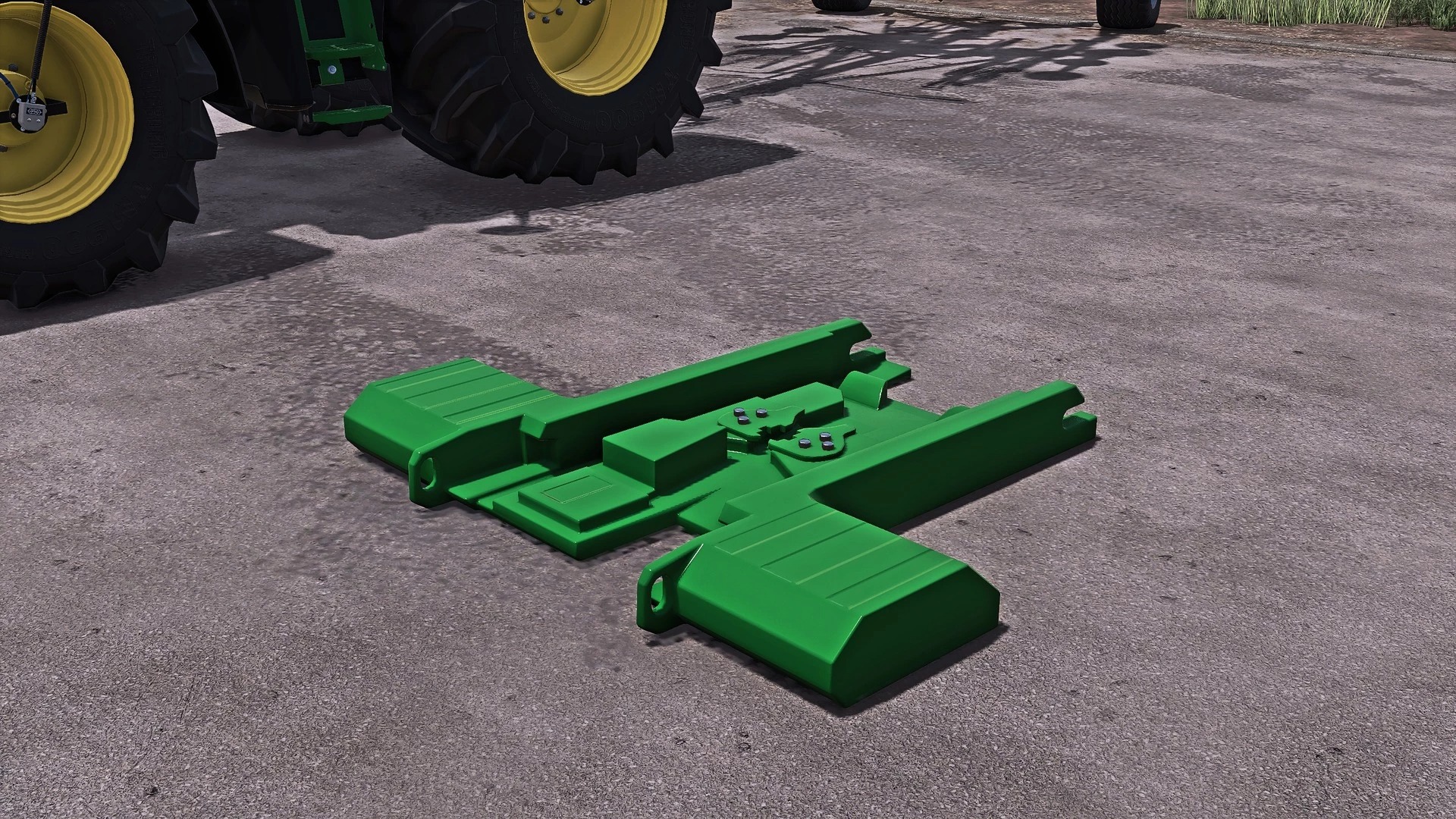 Součástí balení je také odpovídající čelní nakladač John Deere 683R a přední závaží John Deere 1150.