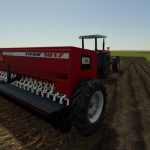 Dobíjecí secí stroj a zásobník na hnojivo.