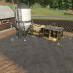 Cementárna: zpracovává kámen na cementové výrobky. Produkty stohuje po 3 kusech pro snazší nakládání.