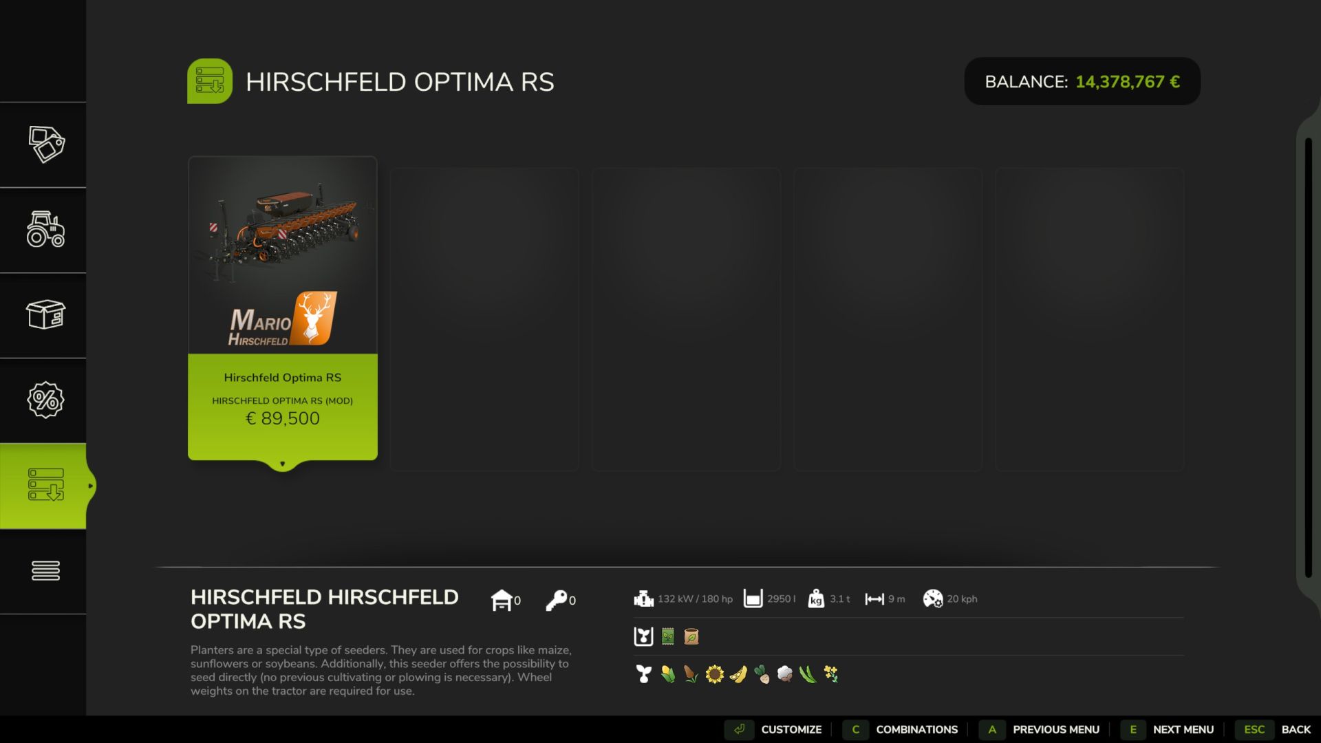 Tato přepracovaná verze známého přesného secího stroje Kverneland byla optimalizována společností Hirschfeld Technologies speciálně pro FS25.