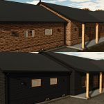 Budova má garáž pro dvě auta, velký obývací pokoj s kuchyní, dvě ložnice a koupelnu.