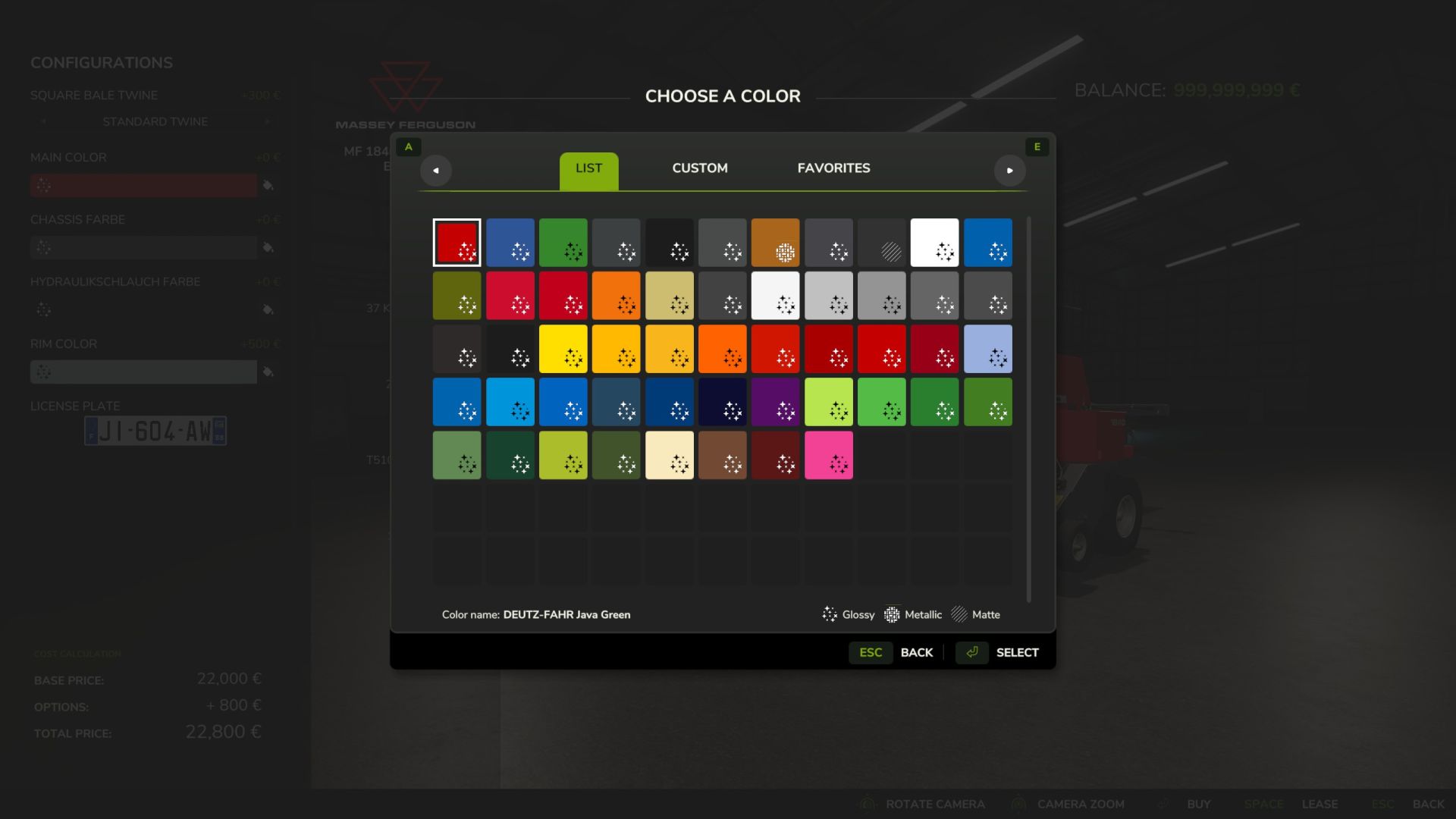 Výběr barvy podvozku