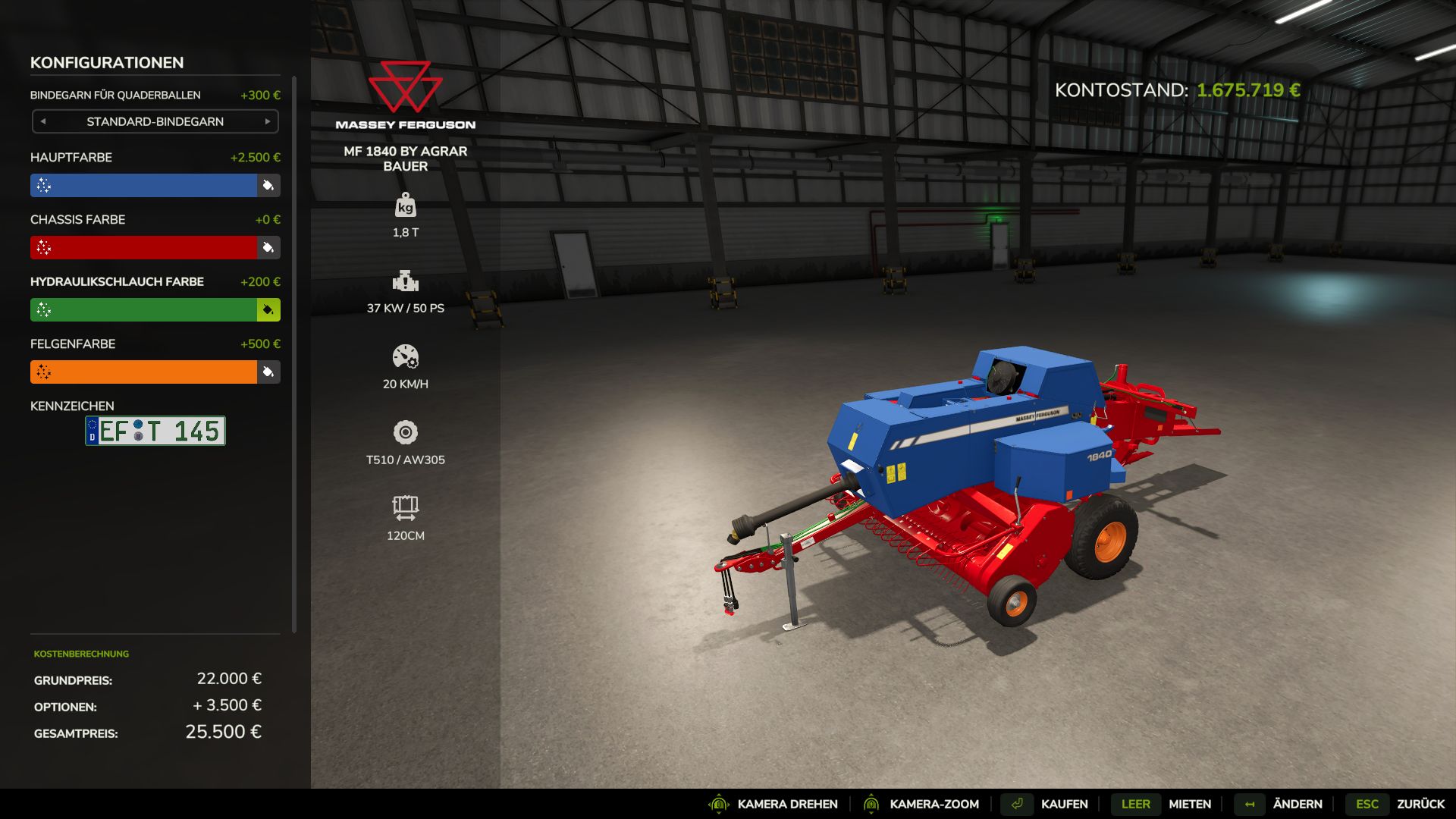 Nabízím Vám lis Massey Ferguson 1840 HD s výběrem barev.