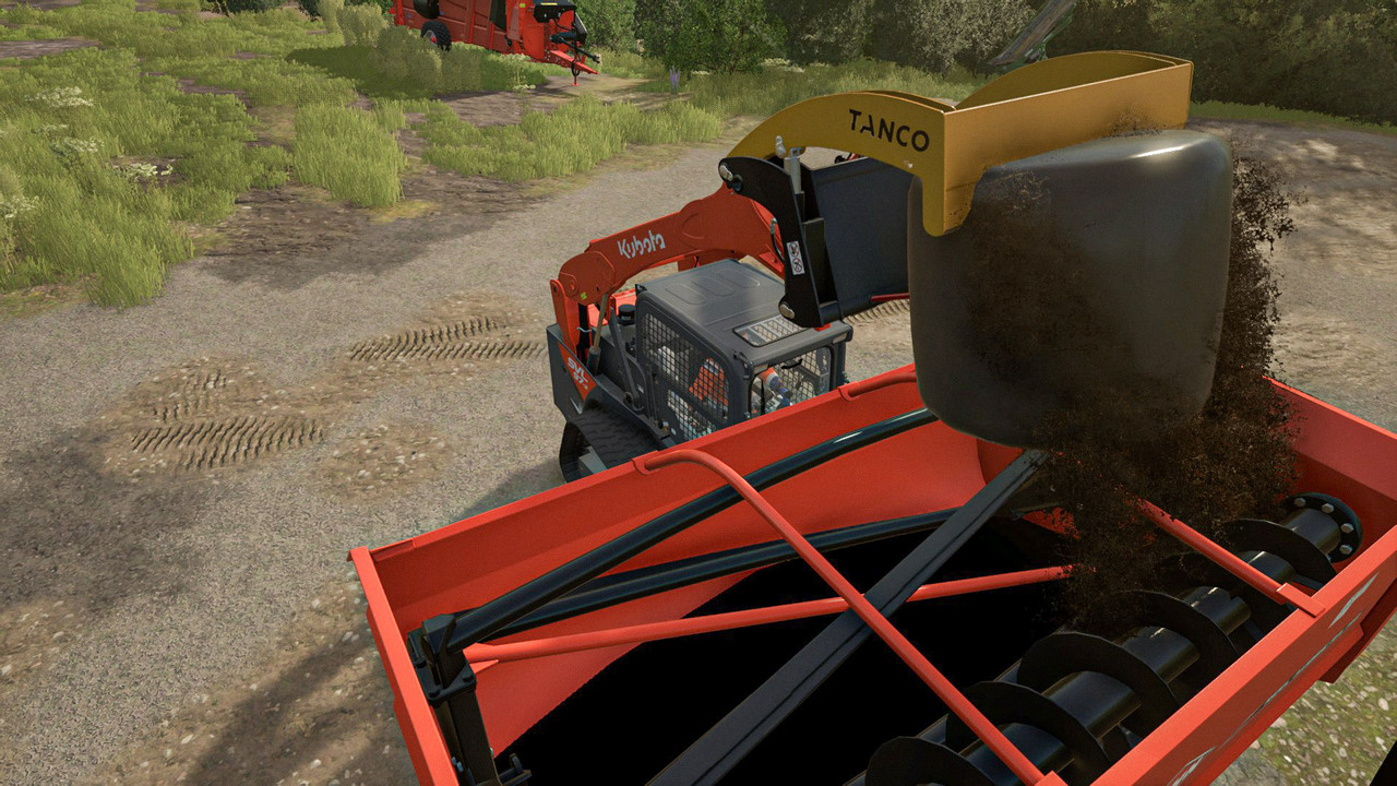 Je ideální pro krmení kulatých balíků podél krmných chodeb a do krmítek s krmivem, krmná lopata je také součástí balení.