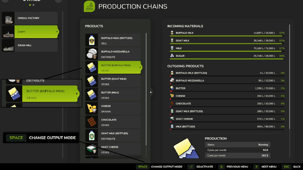= Distribuovat – Stejné jako v základní hře. Produkty jsou odesílány do jiných produkcí, které je mohou použít.
