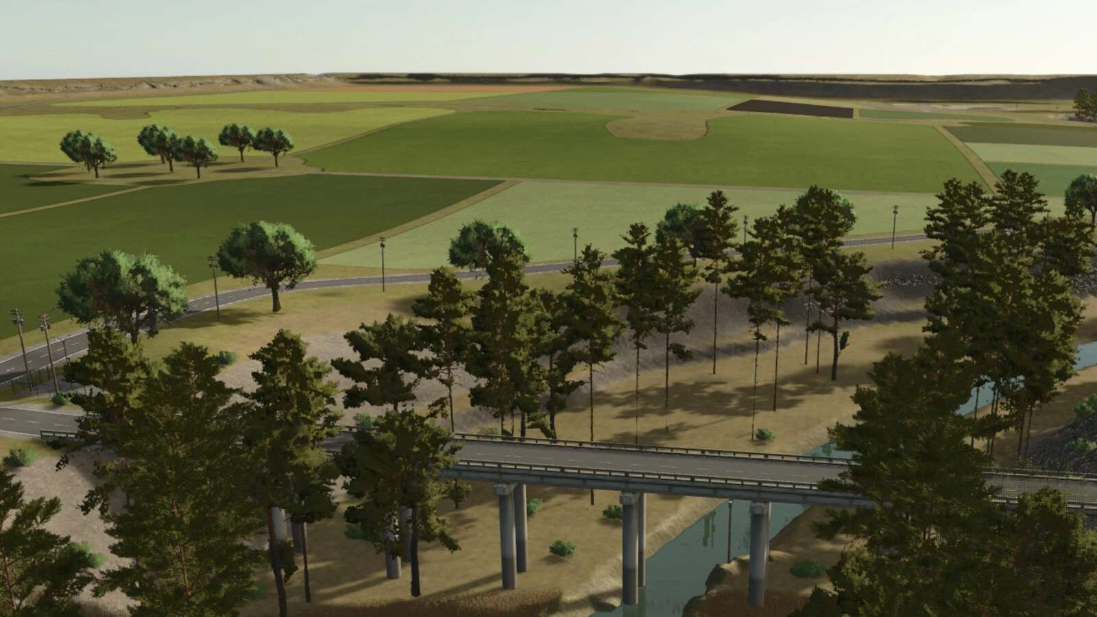 Následuje rovinatá otevřená krajina, odkud je vidět na míle daleko. Největší změnou na této polofiktivní mapě jsou stromy, které byly přidány, aby ve hře zajistily lesní hospodářství. Ve skutečnosti stromy nemáme.