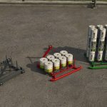 Držák spotřebního materiálu pojme 12 rolí spotřebního materiálu, motouz na hranaté balíky, balíkovací fólii nebo síť na kulaté balíky.