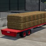 Přívěs s plošinou, ideální pro sběr balíků. Funguje s univerzálním automatickým nakládáním.