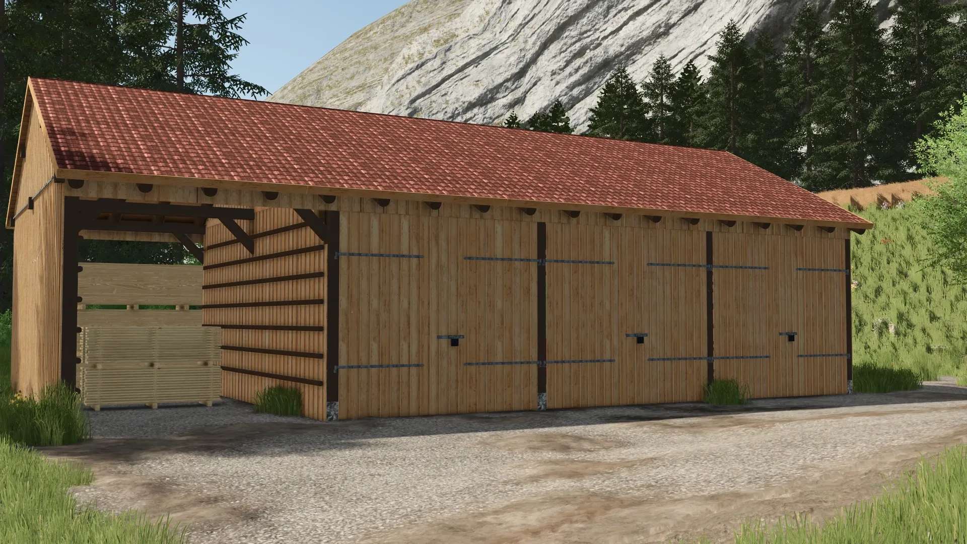 Jedná se o stodolu v bavorském stylu, kterou lze volně využít i pro stavbu map.