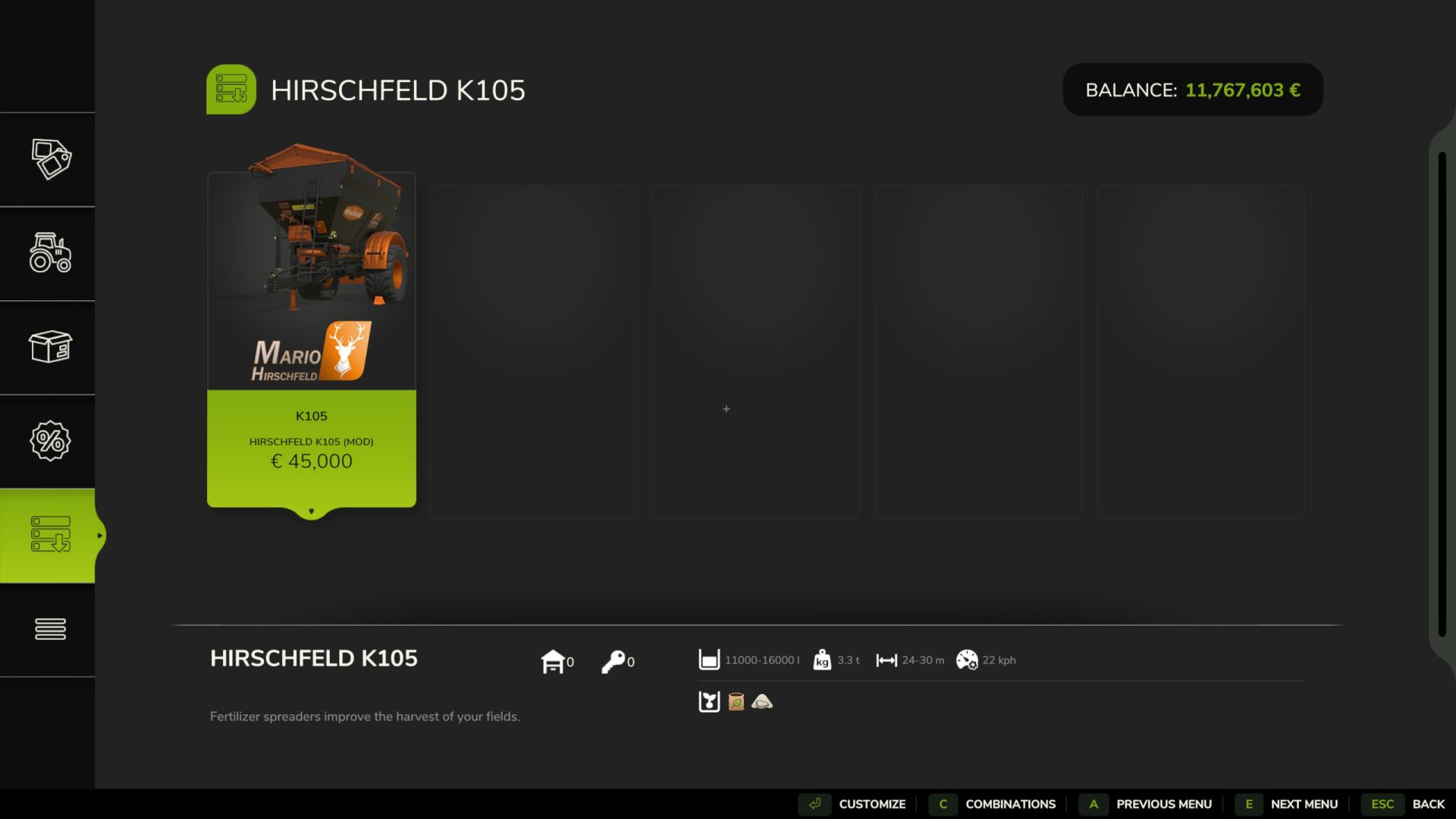 Tato modifikace FS25 vám nabízí osvědčený rozmetač vápna a hnojiv Bredal ve speciálně upravené edici Hirschfeld. Mod byl vizuálně i technicky optimalizován a perfektně se integruje do stávajících sad vozidel Hirschfeld.