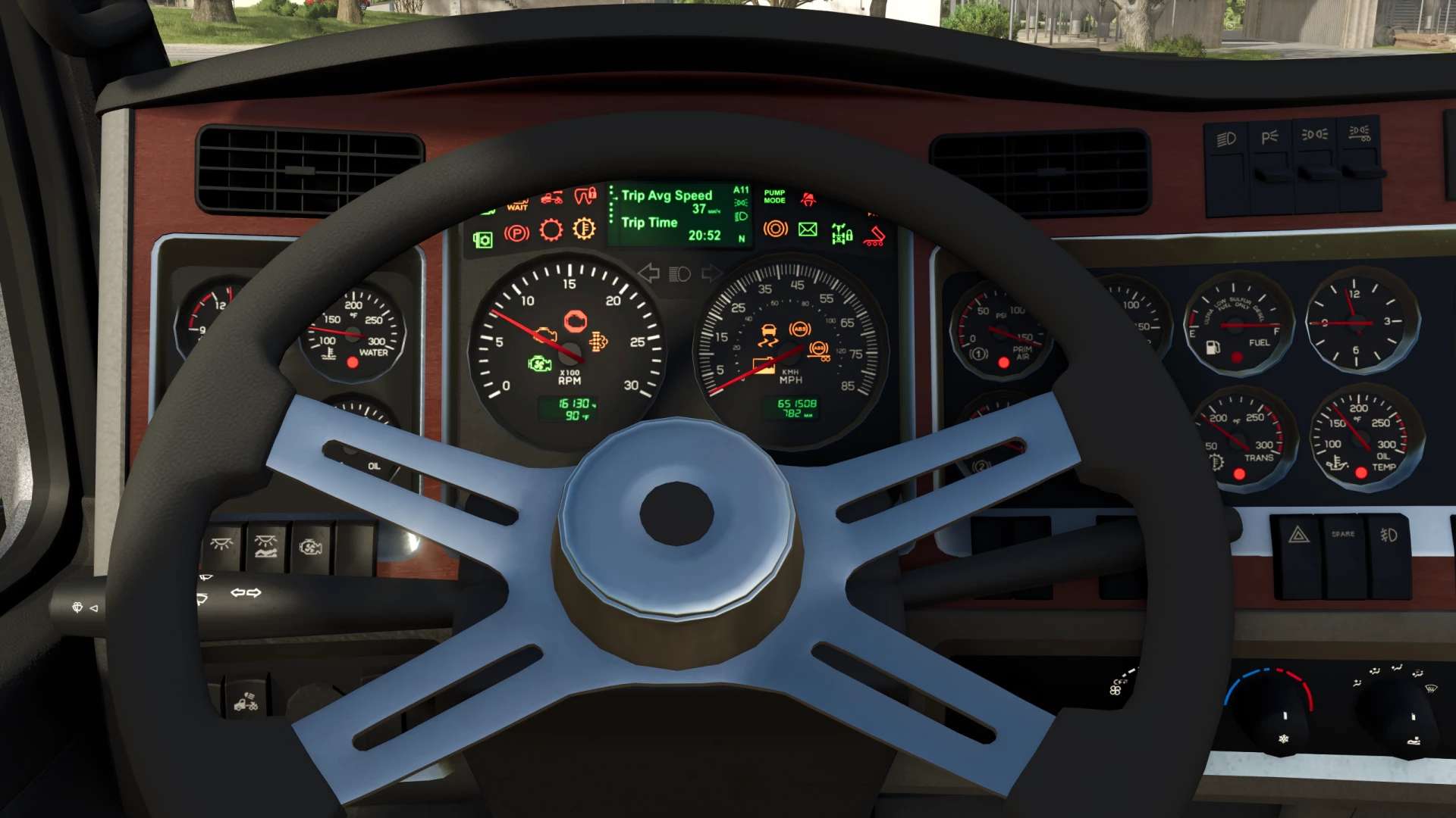 – Animovaná palubní deska, řadicí páka, pedály a otočný spínač.
