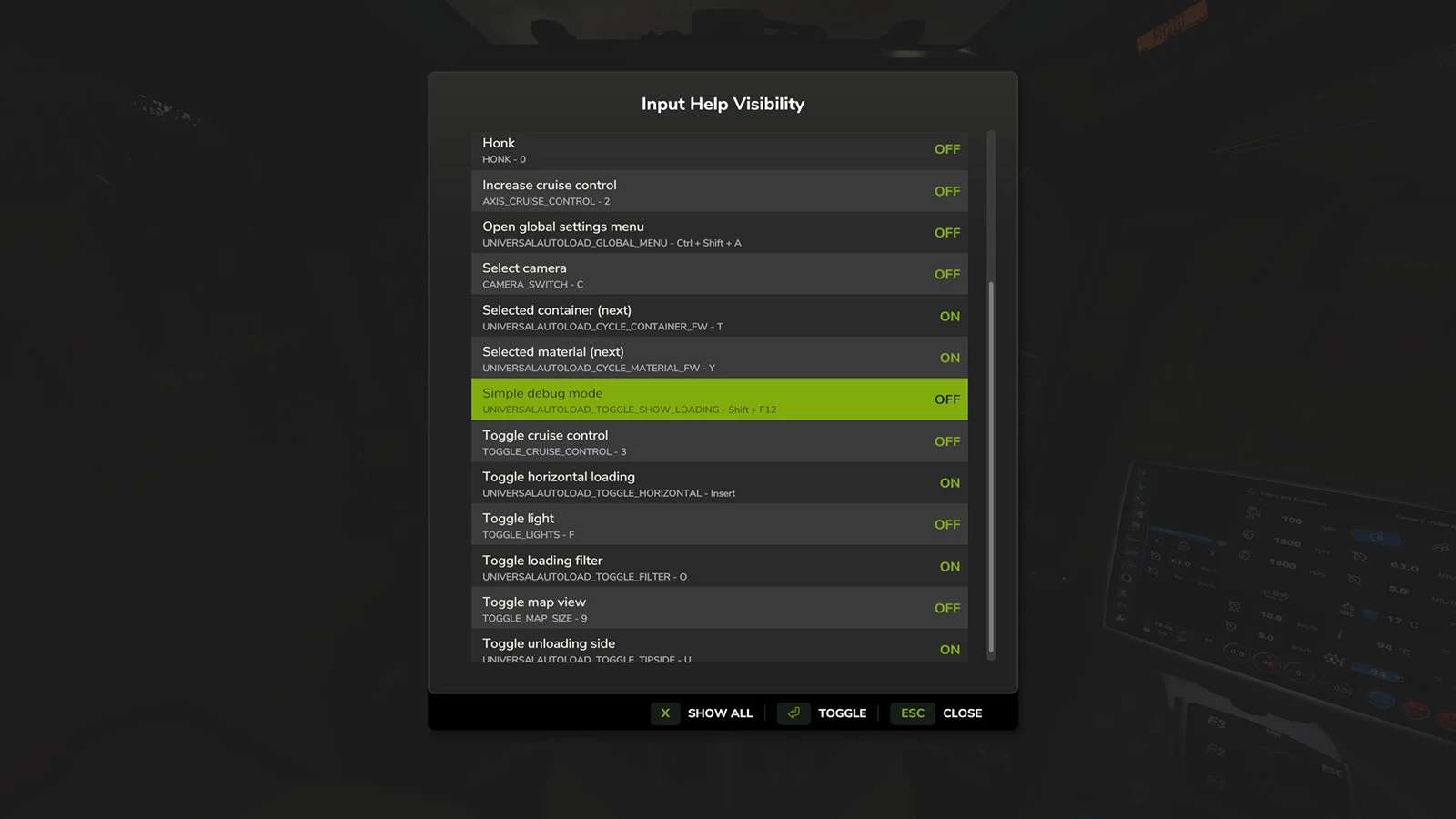 Když hra i moderátoři přidají do HUDu vlastní nápovědu, rychle se tam zaplní. Opravdu potřebujete připomínat, že F zapíná baterku, nebo že existuje klávesová zkratka pro zobrazení ladicích kanálů Courseplay?
