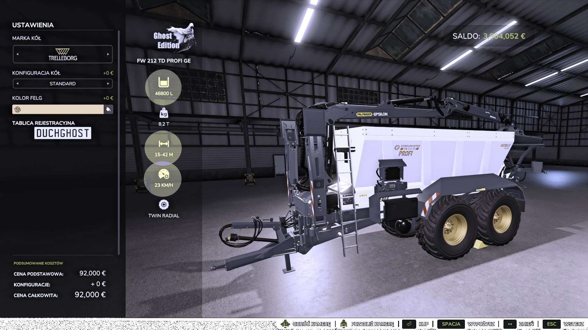 Kapacita: 46 800 + Łycha 3 200 L = 50 000 (kýbl lze naplnit a vyprázdnit do vany, když chybí několik litrů k dokončení pole).