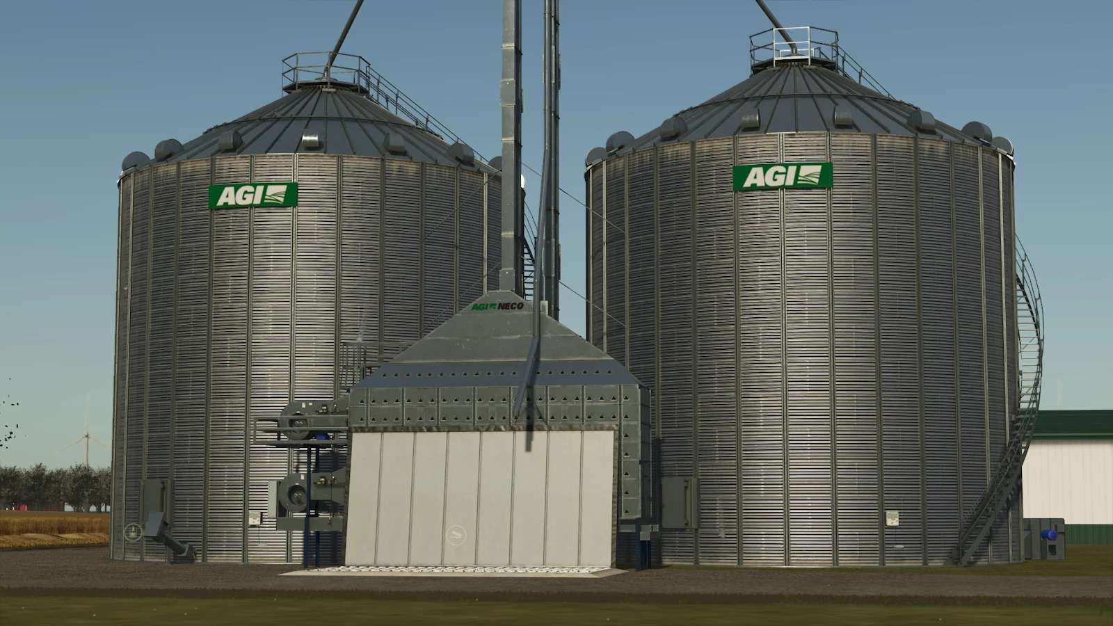 Velkoobjemový komplex Agi s plochým dnem a vestavěnou sušičkou obilí.