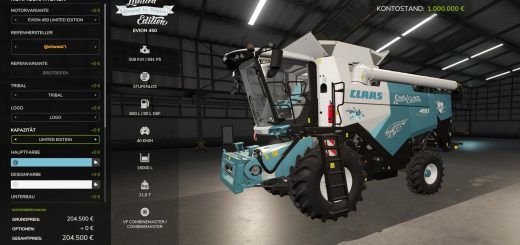 FS25 Kombajny February 16, 2026 by FS22mods · Published February 16, 2026 Claas Evion 450 Pack Limited Edition V1.0.0.0