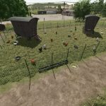 Patří sem malý, střední a velký kurník s volným výběhem pro spokojená kuřata.