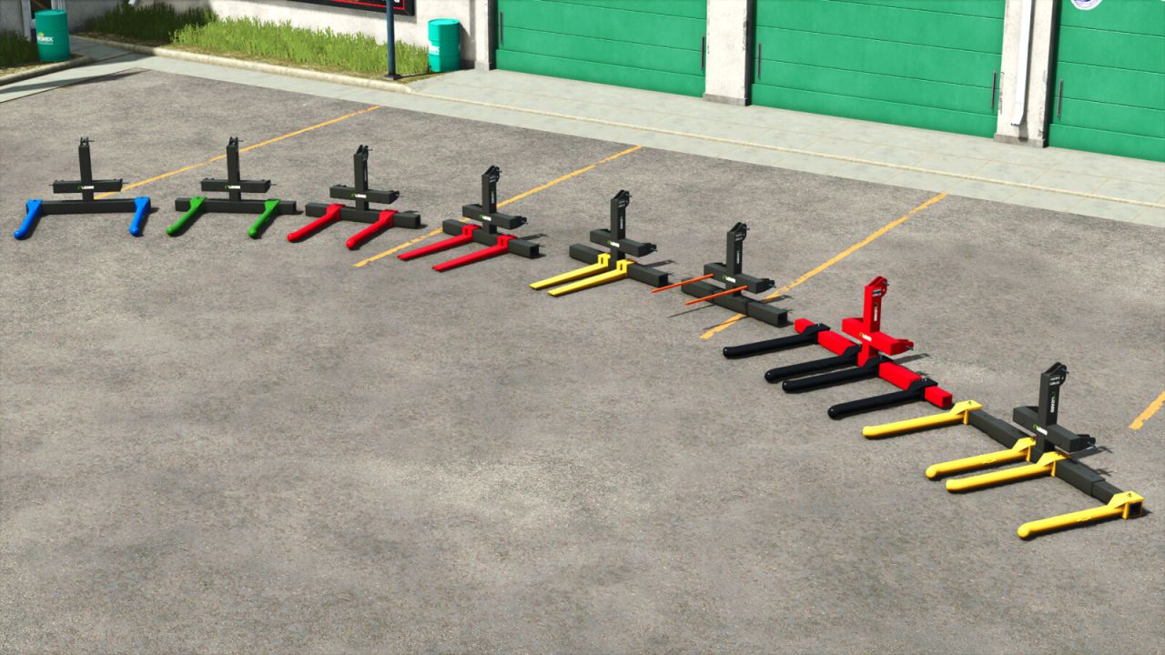 Vidle Lizard jsou velmi užitečné, protože je lze použít k pohánění kulatých balíků, hranatých balíků a palet. Vidle jsou také k dispozici v obchodě v různých barvách.