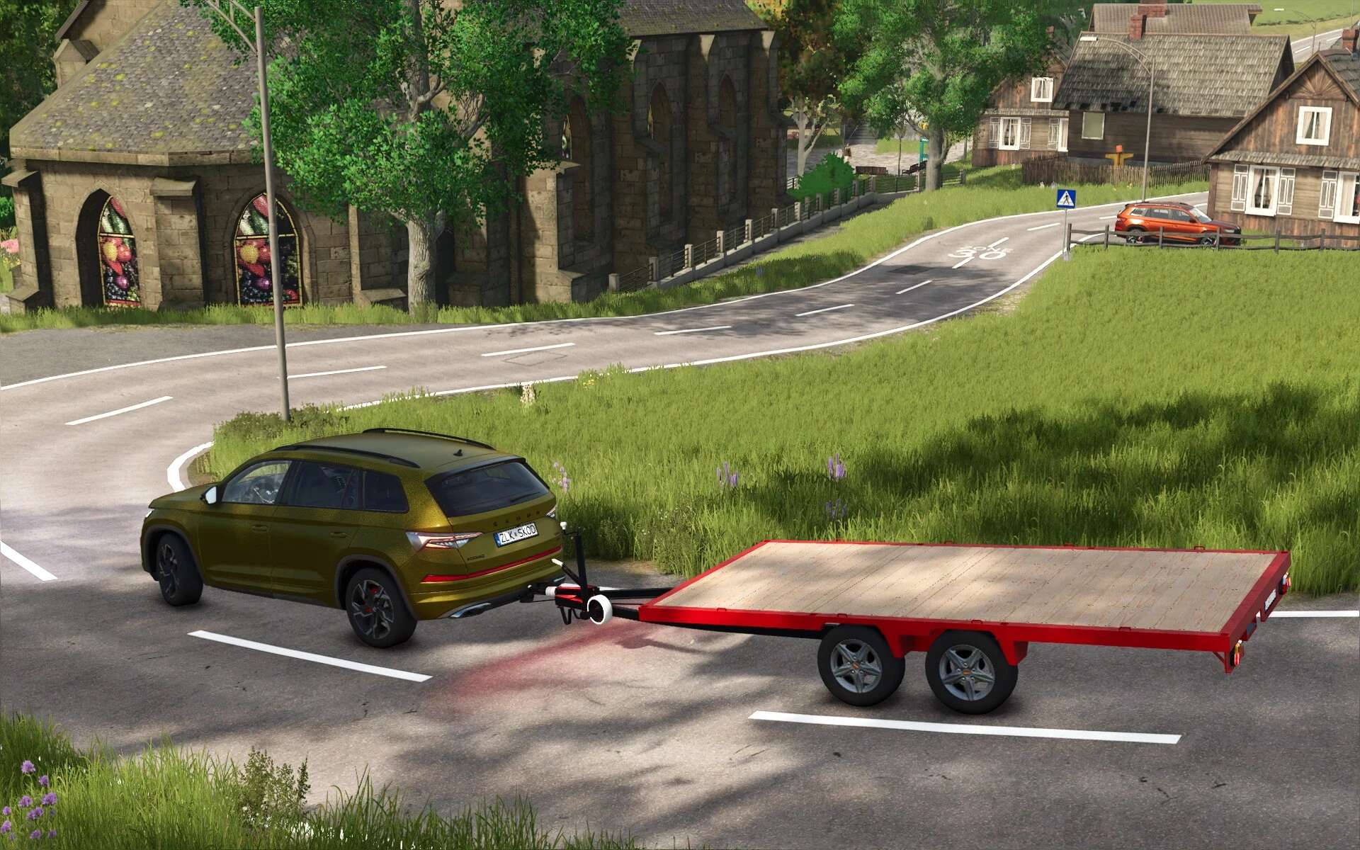 Toto je přestavba mého vlastnoručně vyrobeného přívěsu pro auto, je to jeden z mých prvních modelů a rozhodně je stále prostor pro vylepšení, ale doufám, že se vám bude líbit! Váží 800 kg, stojí 5000 dolarů a nabízí následující funkce a konfigurace: – Barevné a materiálové konfigurace (nápravy, plošina, nástavby, rampy a pryžové díly) – Dřevěný přívěs, plošinový vůz a přívěs pro přepravu dobytka Přívěs pro přepravu dobytka má prostor pro 5 ovcí, 5 prasat, 4 krávy, 30 kuřat nebo 2 koně. – Lze konfigurovat dřevěnou bednu s napínacími pásy. – Několik různých konfigurací pneumatik – Nájezdové rampy. Rampy lze připevnit na bok tlačítkem N nebo na zadní stranu tlačítkem X nebo pomocí interaktivního ovládání. Vzadu lze rampy otáčet nahoru a dolů a vzdálenost mezi nimi lze zmenšovat nebo zvětšovat. Bavte se při hraní!