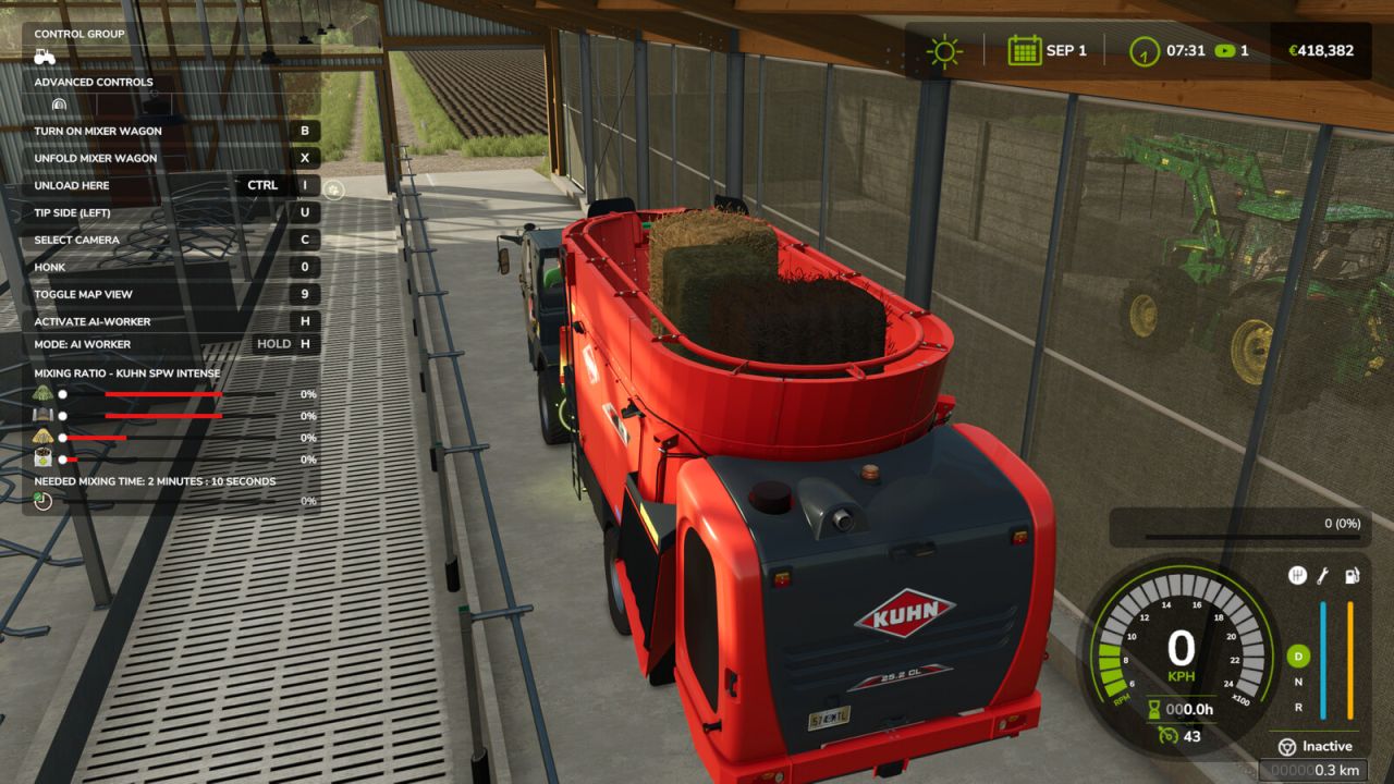 S tímto skriptem nyní každý míchací vůz potřebuje 2 minuty a 10 sekund k smíchání celkové směsi, jakmile je míchací poměr správný. Doba míchání závisí na časové škále ve hře.